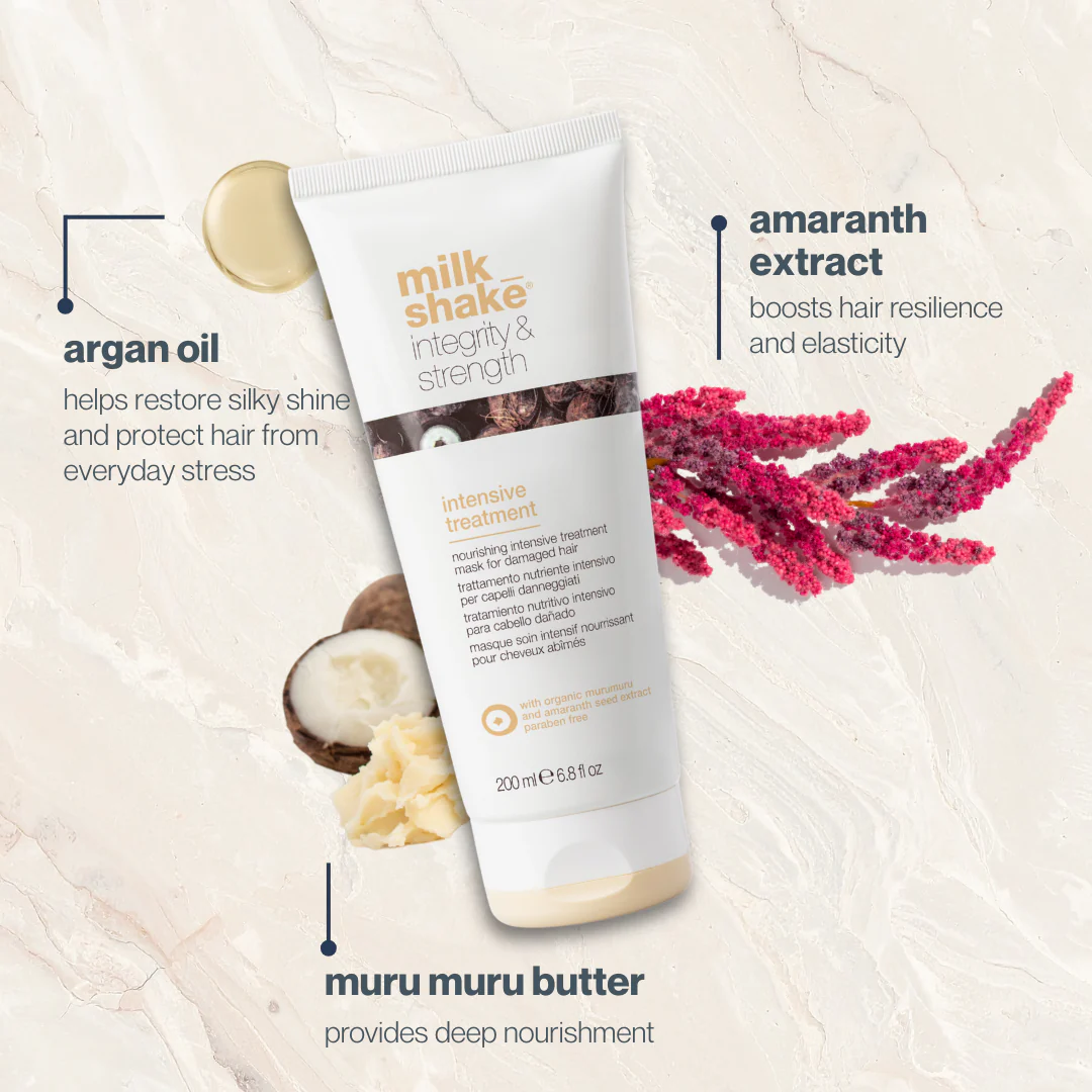 Revive and fortify your hair with our integrity & strength intensive treatment, a concentrated protein formula designed to restructure and strengthen damaged or chemically treated hair. Infused with amino acids, this professional treatment penetrates deep into the hair fibre to restore softness, shine, and resilience.